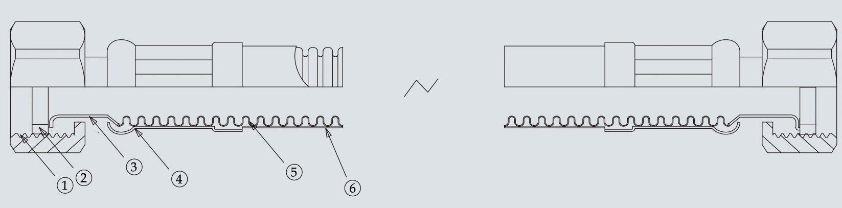④不锈钢套⑤304不锈钢波纹管