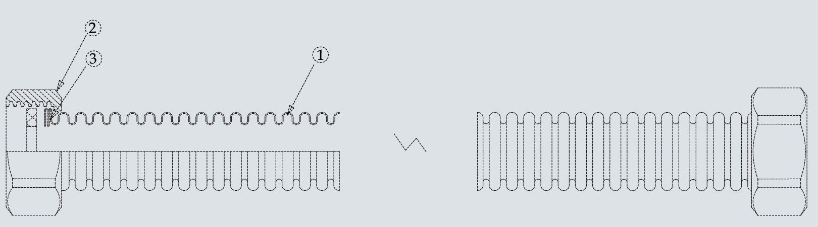 ZLS-02 F3/8"x F3/8"xL 3/8" 12.7 ①304不锈钢水暖波纹管②螺帽③平垫 1.0MPa